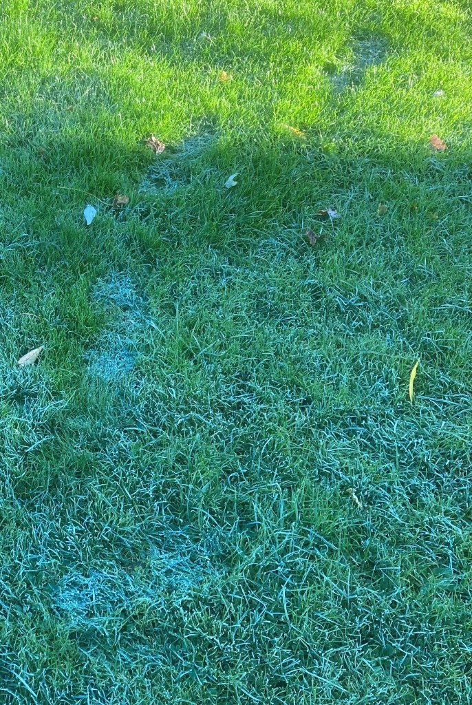 Frost has landed upon the lawn during this cold night,