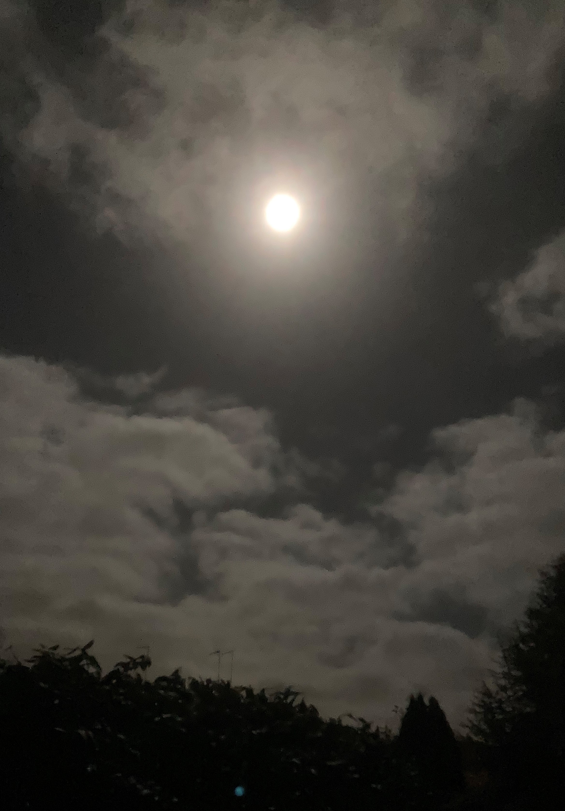 The moon is shining on the trees,